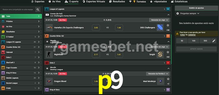 A aposta p9 oferece aos jogadores a experiência mais conveniente de apostas em eSports!